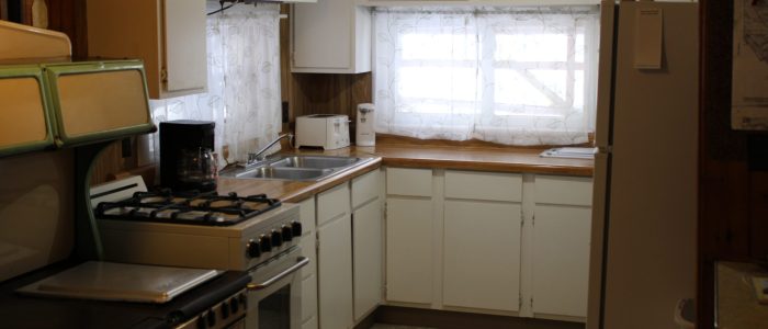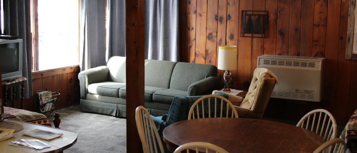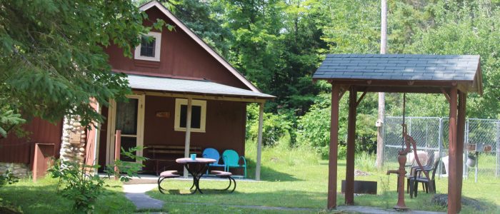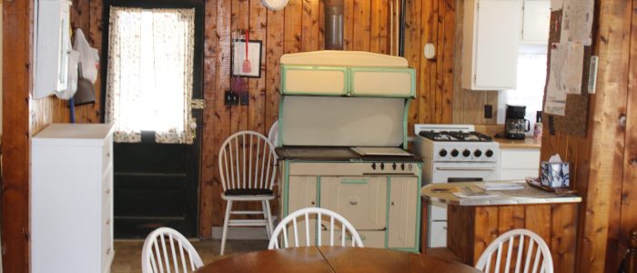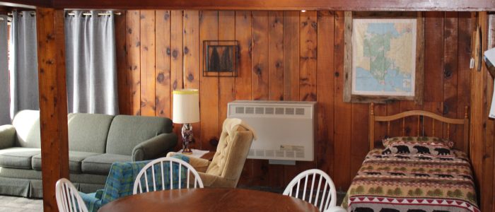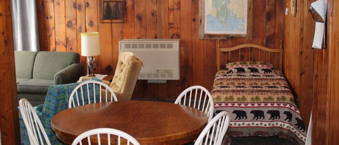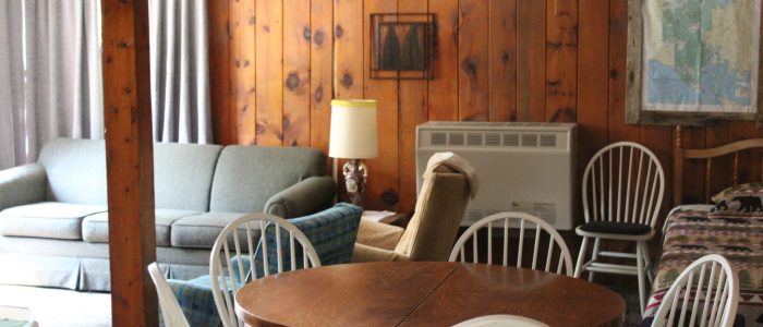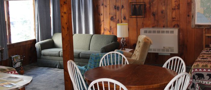 Cabin 1 features 2 bedrooms with 1 full bed and 4 twin beds, in the combination living room/kitchen cabin. This cabin comfortably sleeps 6.